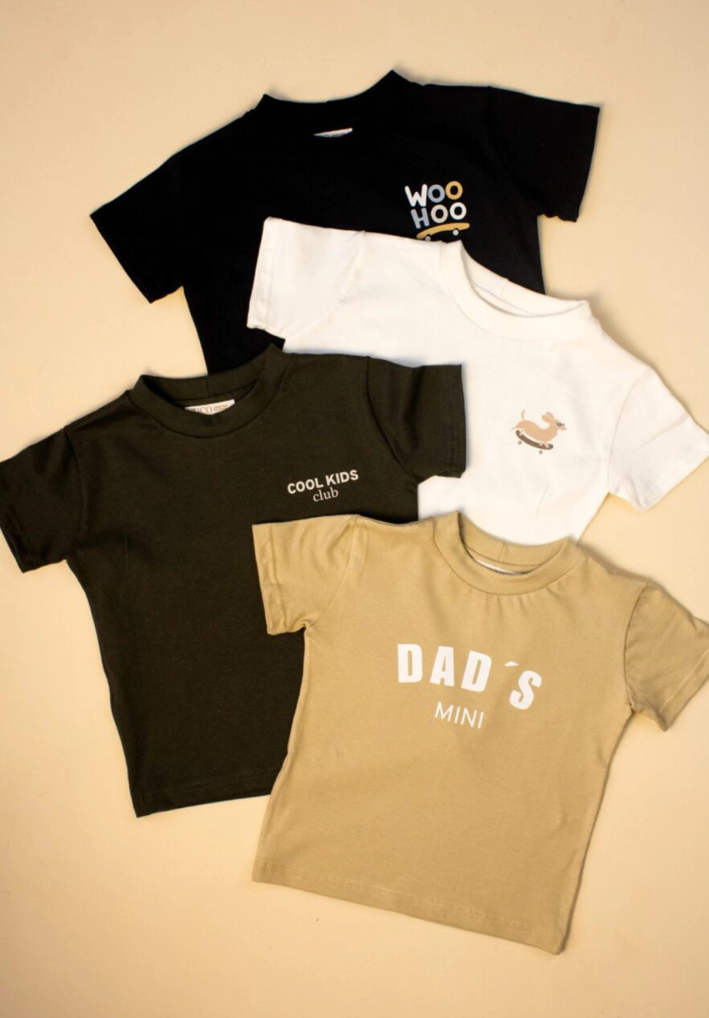 A Camiseta Dad’s Mini é a escolha ideal para quem quer celebrar a miniatura do papai com estilo e conforto. Confeccionada em tecido 100% algodão na cor palha, oferece uma textura suave e respirável para o dia a dia. Sua estampa minimalista “dad’s mini” traz um charme discreto e moderno, perfeita para qualquer ocasião.